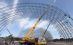 球形網(wǎng)架施工方案 1、工程概況和總體部署 網(wǎng)架采用正放四角錐形式,采用螺栓球接點(diǎn),采用普通鋼管材,采用兩側(cè)焊接水平支座...